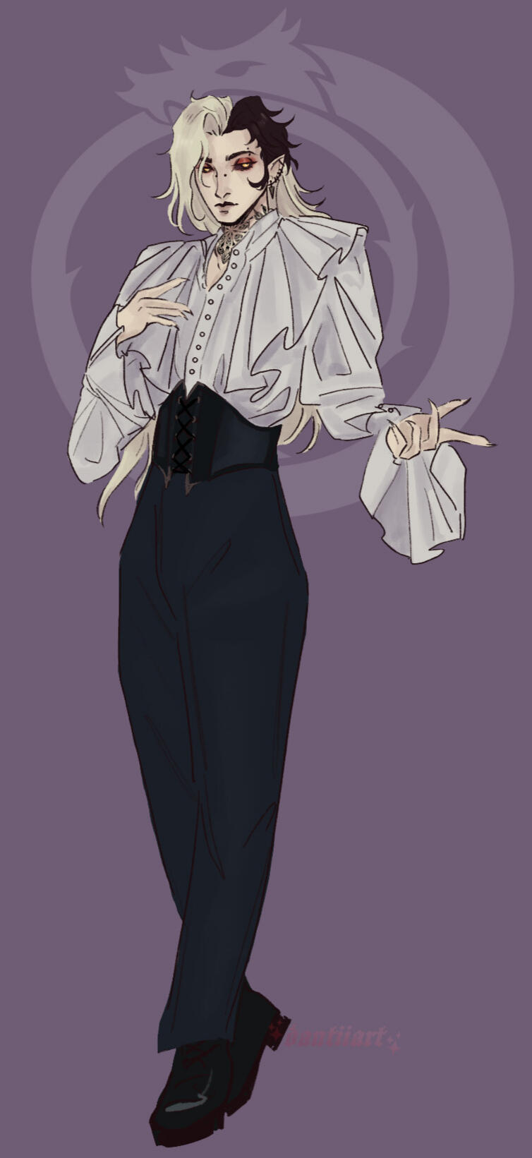 ― PAPER DOLL: Colored cut-out style similar to lineless; full body only and details will be simplified. You may request a nude version (free) and multiple clothing options (priced per extra item or outfit).― CUSTOM DESIGNS: Base price includes 1 colored (partially rendered) full body design. I will work with you throughout the designing process with full communication to create a character from your ideas and vision.― CHARACTER SHEETS: Base price includes 1 standard style full body in (partially rendered) color (plus optional nude version), the palette swatches, a zoom-in of the eyes, and optional edits with the character's name and other information you wish to include.**Extra feature spotlights, props, and art may be added to the sheet and are priced according to the request.― INKED & CEL-SHADED: Cell-shaded style inspired by the game art of Hades with blocked in colors and bold inked lineart. The base price is for 1 half body.― SOFT SHADED COLOR: Inspired by Castlevania artist Ayami Kojima, by default this is a half-body of a character in full color, rendered in a similar, sketch-watercolor style to the official art of classic Castlevania games.― PAINTERLY PORTRAIT:
